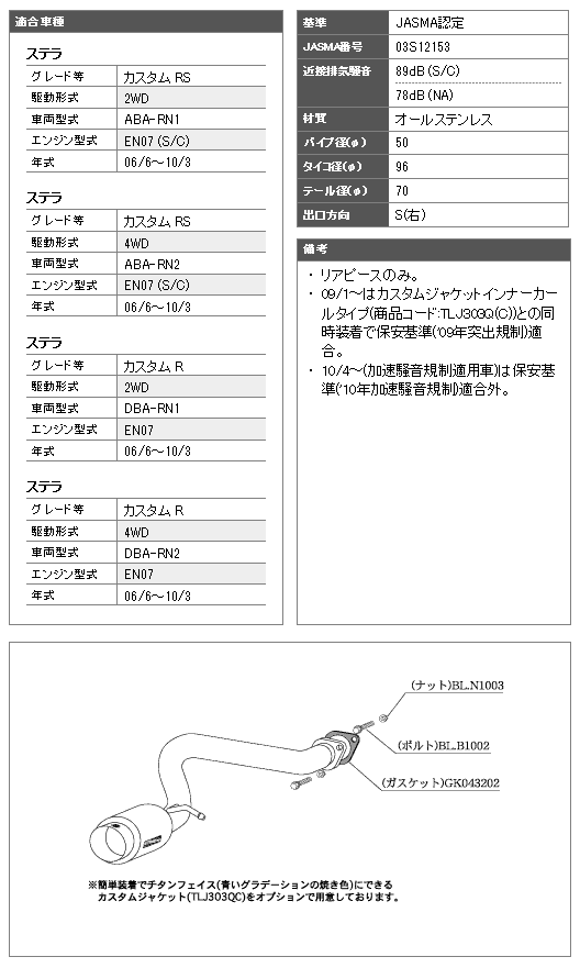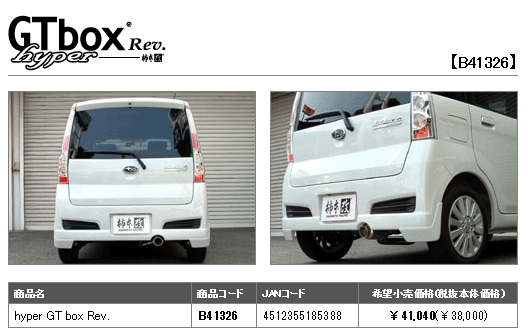 【 スバル ステラカスタムRS 2WD 型式 ABA-RN1 エンジン EN07-S/C 年式 2006/6-2010/3 ≪ オールステンレス パイプ:50Φ テール径:70Φ リアピースのみ ≫≪ 品番:B41326 ≫】 柿本改マフラー 【 ハイパーGTbox revマフラー 】