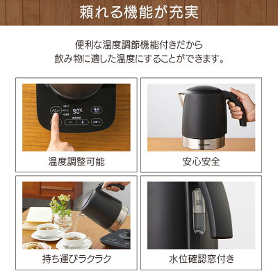 電気ケトル おしゃれ 温度調節付 コーヒー ステンレス IKE-D1000T-B ケトル 電気 アイリスオーヤマ 保温 ポット 湯沸かしポット 湯沸しポット 温度調整 デザインケトル コーヒー 熱湯 空焚き防止 1人暮らし ブラック
