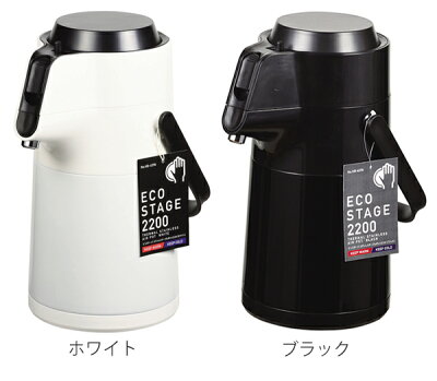ポット 2.2L 保温 保冷 エコステージ エアーポット ステンレス製 ( ステンレスポット 保温ポット 保冷ポット ロック付き 押すだけ 魔法瓶 おしゃれ 白 黒 )